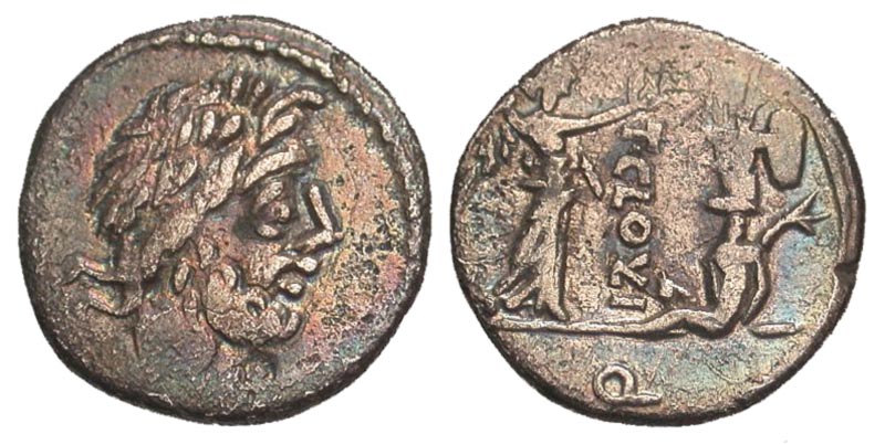 Lot 34-138. T. Cloulius (Cloelius). 98 B.C. AR quinarius. Rome mint.
