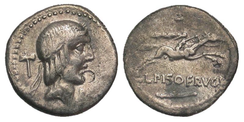 Lot 34-139. L. Capurnius L.f. L.n. Piso Frugi. 90 B.C. AR denarius. Rome mint.