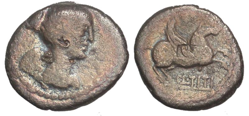 Lot 34-140. Q. Titius. 90 B.C. AR quinarius. Rome mint. Rare.