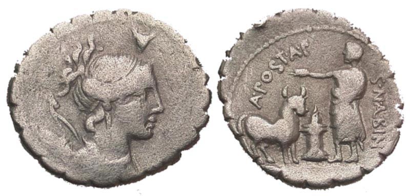 Lot 34-144. A. Postumius A.f. SP.n. Albinus. 81 B.C. AR serrate denarius. Rome mint.