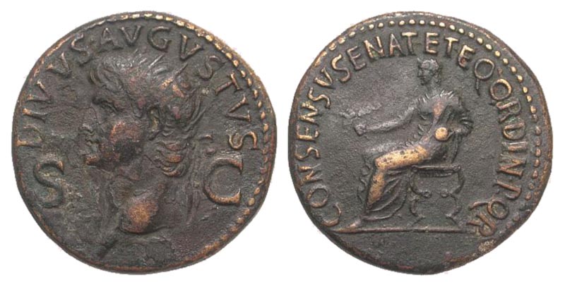 Lot 34-155. Divus Augustus. Died A.D. 14. Æ dupondius. Rome mint, Struck under Gaius (Caligula), A.D. 37-41.