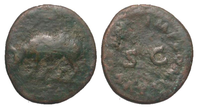 Lot 34-174. Domitian. A.D. 81-96. Æ quadrans. Rome mint, Struck A.D. 84-85.