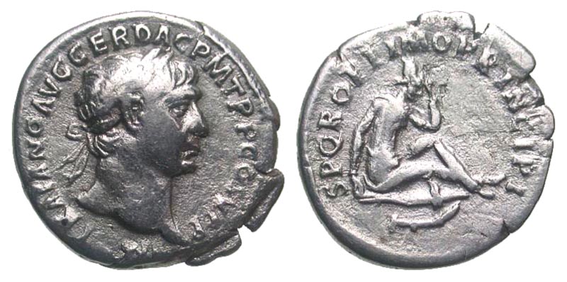 Lot 34-176. Trajan. A.D. 98-117. AR denarius. Rome mint, Struck A.D. 103-111.