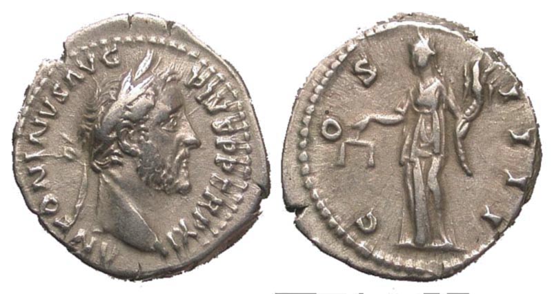 Lot 34-183. Antoninus Pius. A.D. 138-161. AR denarius. Rome mint, Struck A.D. 147-148.