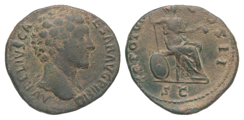 Lot 34-190. Marcus Aurelius. As Caesar, A.D. 138-161. Æ sestertius. Rome mint, Struck A.D. 152-53.