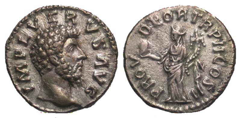 Lucius Verus. A.D. 161-169. AR denarius (17.5 mm, 2.92 g, 1 h). Rome mint, Struck A.D. 162. IMP L VERVS AVG, bare head right / PROV DEOR TR P II COS II, Providentia standing left, holding globe and cornucopia. RIC 483; BMCRE 207; RSC 154. VF.