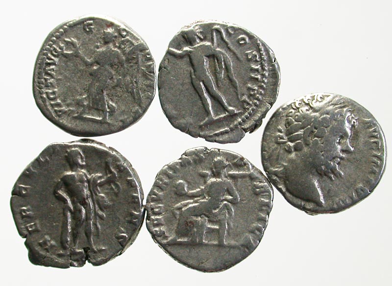 Lot 4-287. Lot of 5 Denarii of Septimius Severus.
