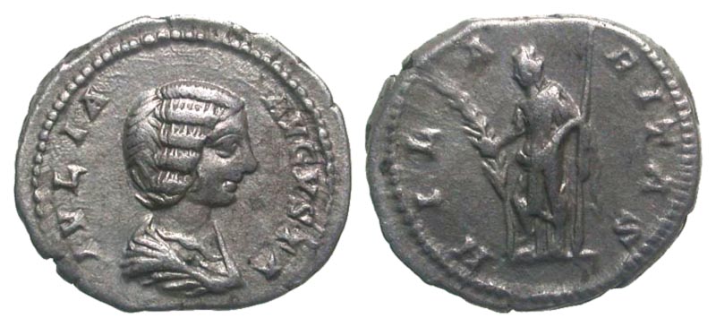 Lot 34-206. Julia Domna. Augusta, A.D. 193-217. AR denarius. Laodicea ad Mar mint, Struck A.D. 196-203.