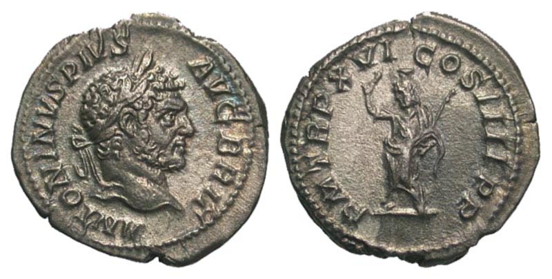Lot 34-207. Caracalla. A.D. 198-217. AR denarius. Rome mint, Struck A.D. 213.