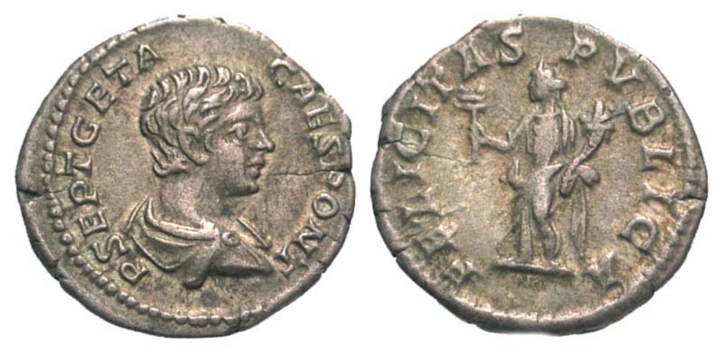Lot 34-211. Geta. As Caesar, A.D. 198-209. AR denarius. Rome mint, Struck A.D. 198-200.