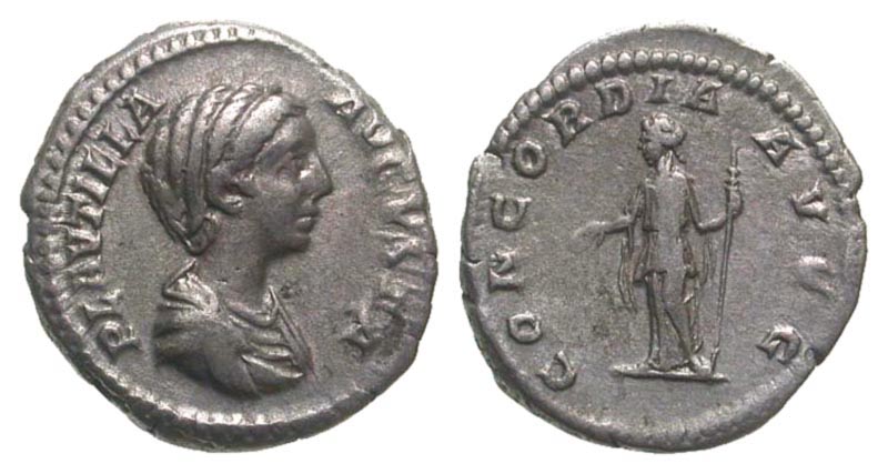Lot 34-214. Plautilla, wife of Caracalla. AD 202-205. AR denarius. Rome mint, Struck A.D. 202-203.