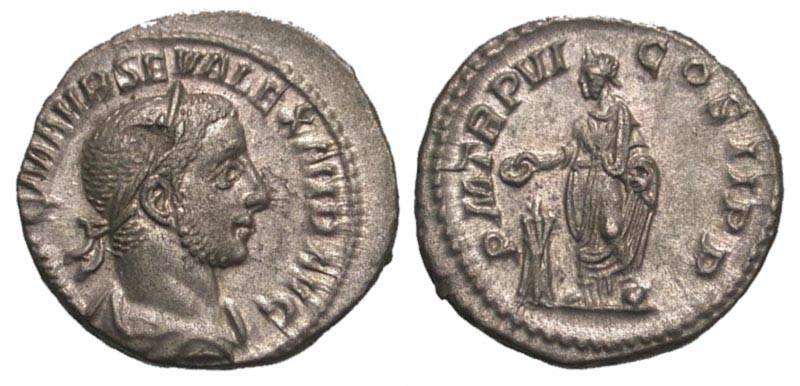Lot 34-221. Severus Alexander. A.D. 222-235. AR denarius. Rome mint, Struck A.D. 228.
