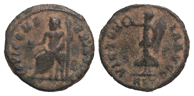 Lot 34-246. Anonymous Pagan Issues. Ca. A.D. 305-313. Æ 1/12 nummus. Antioch mint, Struck A.D. 312.
