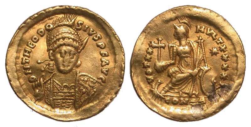 Lot 34-258. Theodosius II. A.D. 402-450. AV solidus. Constantinople mint, Struck A.D. 430-440.