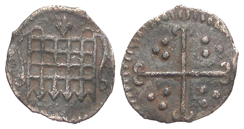 British, House of Tudor. Elizabeth I. 1558-1603. AR half penny (10.6 mm, 0.24 g, 1 h). London mint; mm: none, Struck 1582-1600. Portcullis, cross above / Cross and pellets. SCBC 2581; North 2018. gVF, toned.