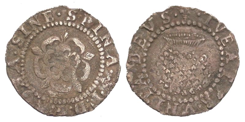 British, House of Stuart. James I. 1603-1626. AR penny (14.2 mm, 0.45 g, 5 h). London mint; mm: coronet, Second coinage, 1604-1619. ROSA SINE SPINA, crowned rose / TVEATVR VNITA DEVS, crowned thistle. SCBC 2663; North 2107. VF.