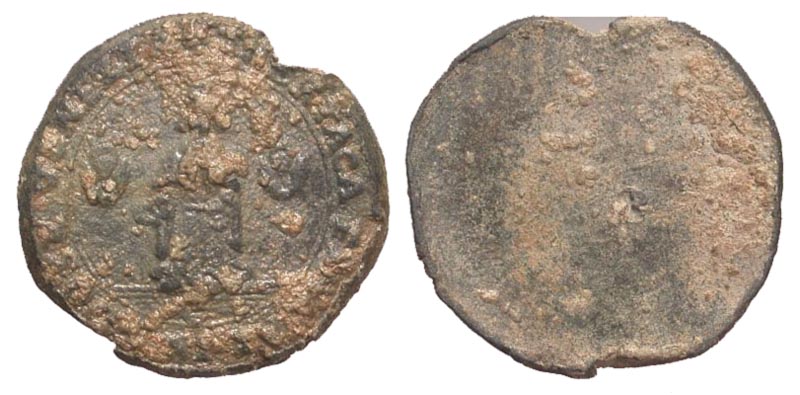 Italy, Venice. 9th-13th centuries A.D. PB seal (22.9 mm, 5.15 g). Uncertain Doge standing facing / uniface. Fine, multiple earthen encrustations.