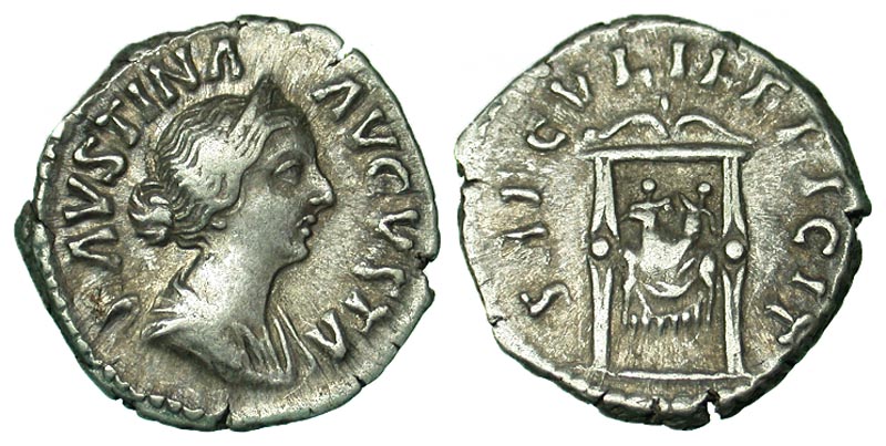 Lot 1-169. Faustina II. Augusta, A.D. 147-175. AR denarius. Rome, A.D. 154-157.