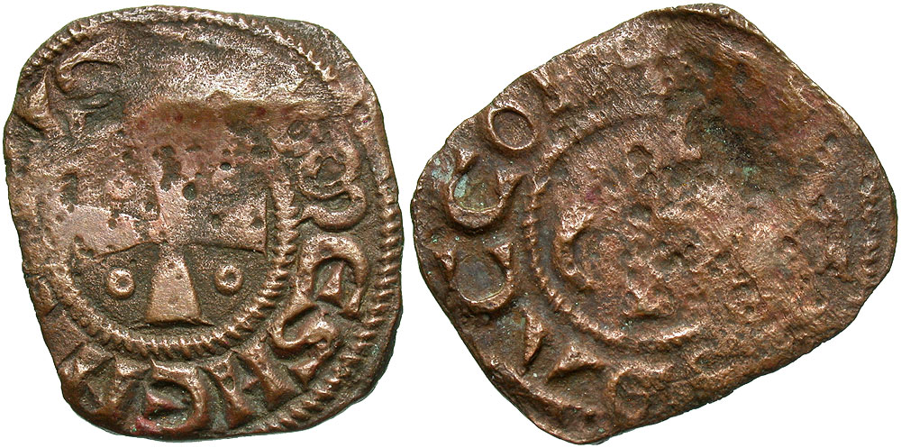Lot 35-350. Crusader States, Latin Kingdom of Jerusalem. Henri of Champagne. 1192-1197. Æ pougeoise. Acre mint. From the Kenneth Miller Collection of Ake-Ptolemaïs and Related Biblical Coins. Ex A. J. Seltman Collection.