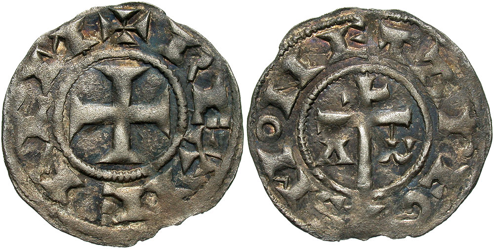 Lot 35-351. Crusader States, Latin Kingdom of Jerusalem. Commune of Acre. Anonymous royal coinage. 1231-1243. BI denier. Extremely rare. From the Kenneth Miller Collection of Ake-Ptolemaïs and Related Biblical Coins.