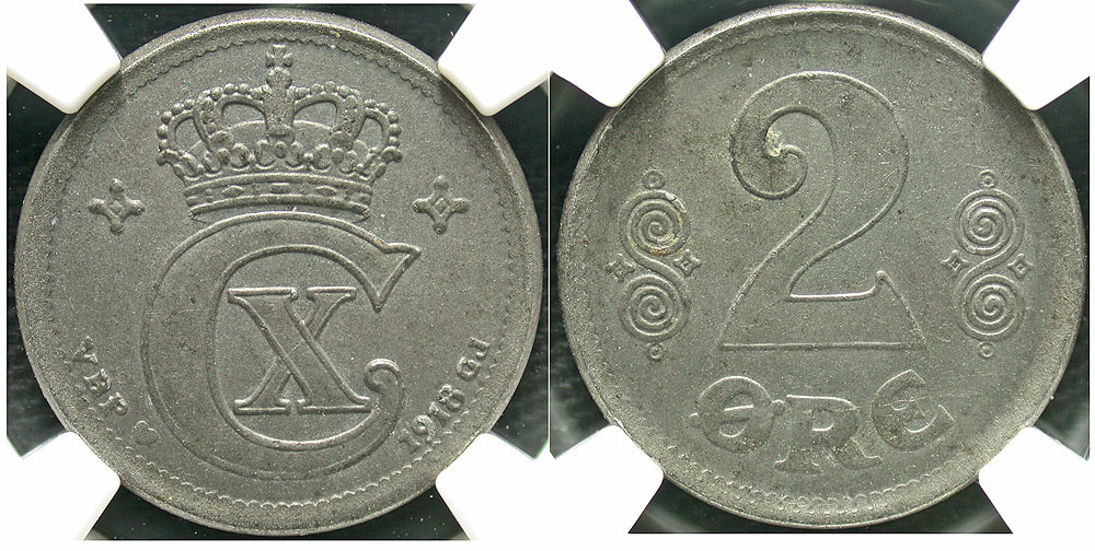 Lot 35-416. Denmark. Christian X. 1918-VBP GJ. Iron 2 ore. Ex R. L. Lissner Collection (CNG / St. James / M. Teller, 1-2 August 2014), 211.