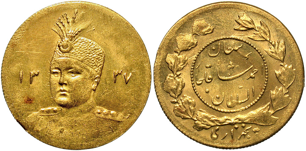 Lot 35-422. Iran, Qajar Dynasty. Ahmad Shah. 1337/1918. 1/2 toman.
