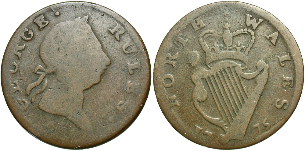 Lot 35-437. Great Britain, North Wales. George Rules. 1775. Æ evasion halfpenny token.