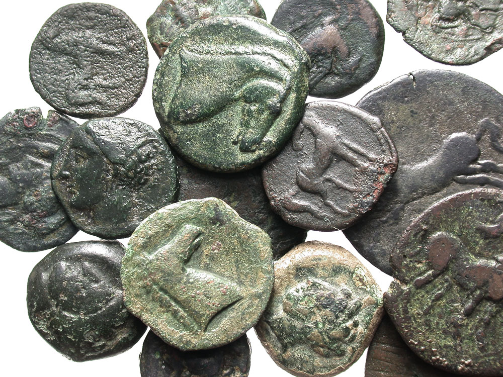 Lot 35-455. [Greek]. Lot of sixteen Æ from Mauretania, Carthage, and Punic mints in Sicily and Sardinia.