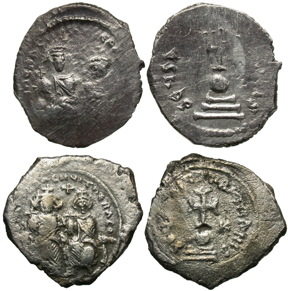 Lot 35-463. [Byzantine]. Lot of two AR hexagrams of Heraclius.