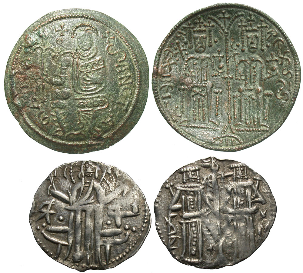 [Medieval]. Lot of two AR and Æ from southeastern Europe. Includes: Hungary. Bela III. 1172-1196. AE rézpénz. Réthy 15. Good VF, green patina // Bulgaria. Ivan Alexander and Michael. 1331-1355. AR grosh. Raduchev & Zhekov Type 1.13. VF.
