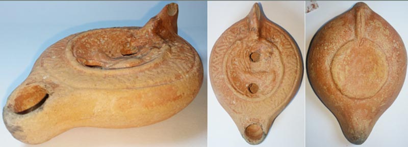 Roman Oil Lamp of a Bird with Head Looking Back; circa 1st Century AD. Roman Oil Lamp of a Bird with Head Looking Back circa 1st Century AD: A wonderful lamp with a fine bird with feathers looking back for the lamp collector. The lamp is has a chip on the handle; measures 80 X 120 mm; and has a great image of a bird. This piece is part of the estate of David Liebert of The Time Machine Company, a knowledgeable and respected member of the Antiquities Dealer community. He was also the author of many articles on artifacts including the many articles in The Celator magazine. His collection is extensive and we will be providing coins and artifacts for you in the future. Don't miss this opportunity to add some of his fine artifacts to your collection at fantastic prices.