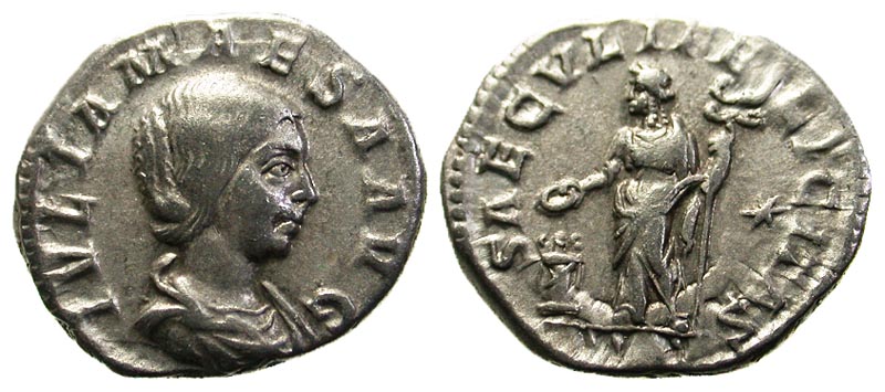 Lot 5-131. Julia Maesa. Augusta, A.D. 218-224/5. AR denarius. Rome, A.D. 220-222.