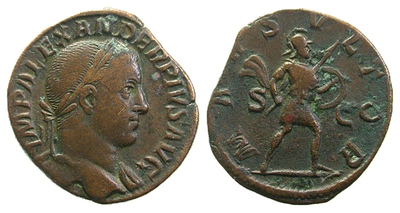 Lot 5-134. Severus Alexander. A.D. 222-235. Æ sestertius. Rome, A.D. 232.