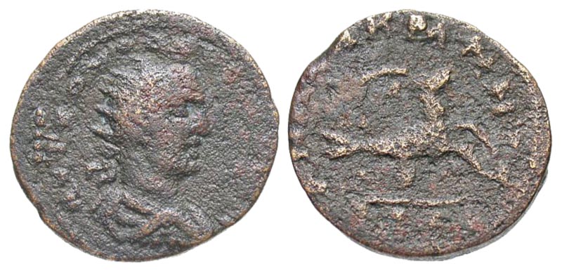 Cilicia, Anazarbus. Trebonianus Gallus. A.D. 251-253. Æ 22 (22.4 mm, 7.95 g, 5 h). Dated year 270 (251/252 A.D.). AVK ΓOV TPЄB ΓAΛΛOC CEB, radiate, draped, and cuirassed bust right / ANAZ AKM MHTЄ; Γ-Γ/ЄTOC, capricorn swimming right on globe. SNG Levante 1506; Zeigler 780; SNG France 2128. Fine.