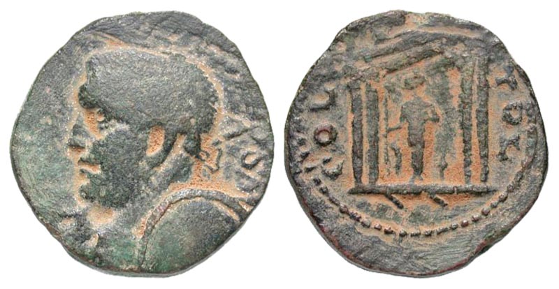 Phoenicia, Ake-Ptolemaïs. Valerian I. A.D. 253-260. Æ 27 (26.7 mm, 14.15 g, 12 h). IMP C P LIC VALERIANVS AVG, laureate and draped bust left, spear and shield over shoulder / COL PTOL, diety standing within portable shrine. Kadman 245; Rosenberger -; Rouvier -. Fine, black patina with sandy red highlights. Rare. From the Kenneth Miller Collection of Ake-Ptolemaïs and Related Biblical Coins.