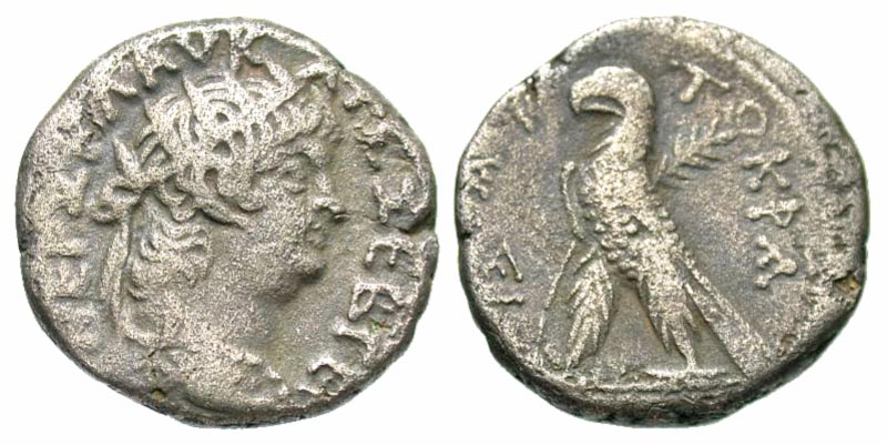 Egypt, Alexandria. Nero. A.D. 54-68. BI tetradrachm (24.2 mm, 11.78 g, 1 h). Dated year 11=A.D. 64-5. NEPΩ KΛAV KAIΣ ΣEB ΓEP AV, radiate head right / AVTOKPA, L IA, eagle standing left, palm behind. Milne 228; Emmett 118; RPC 5283. Fine.