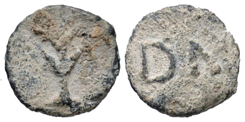 Anonymous. 1st century B.C. - 1st century A.D. PB tessera (14.9 mm, 2.17 g, 6 h). Tree / D·M. VF.