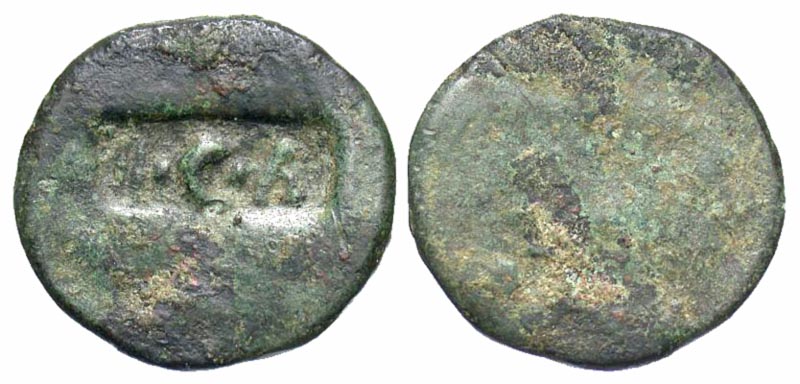 Claudius (?). A.D. 41-54. Æ as (21.4 mm, 3.32 g). Countermark: TI·C·A. The host coin is smooth. Pangerl no. 89. c/m VF.