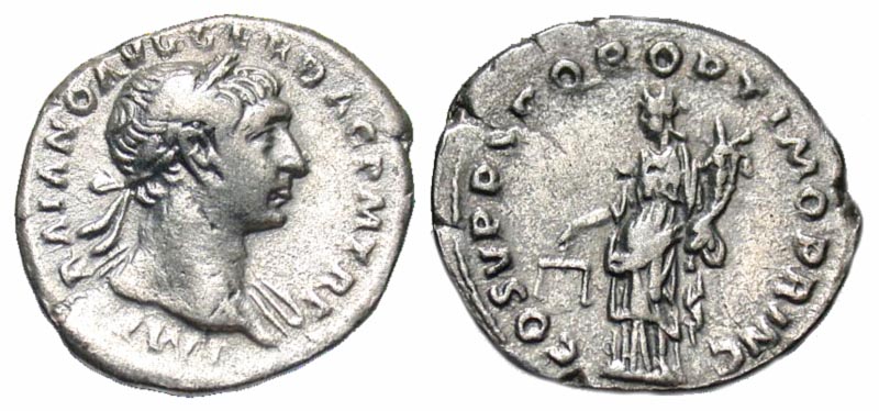 Lot 37-184. Trajan. A.D. 98-117. AR denarius. Rome mint, Struck A.D. 107-111.