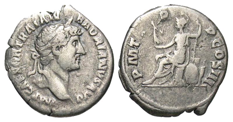 Lot 37-187. Hadrian. A.D. 117-138. AR denarius. Rome mint, Struck A.D. 119-125.
