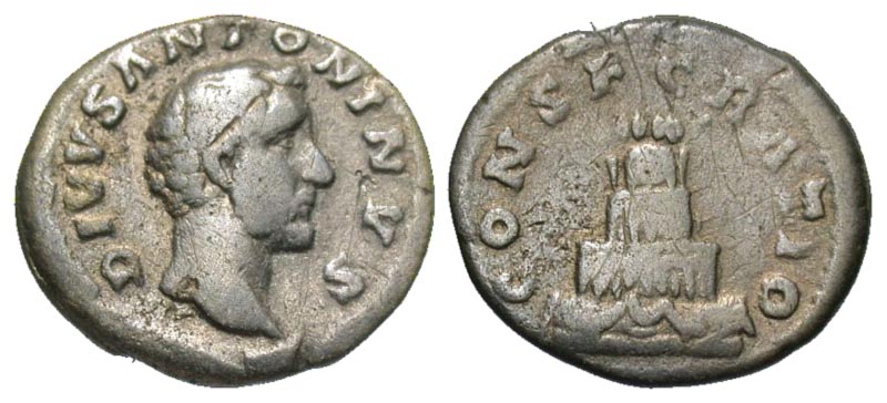 Lot 37-191. Divus Antoninus Pius. Died A.D. 161. AR denarius. Rome mint, Struck A.D. 161.