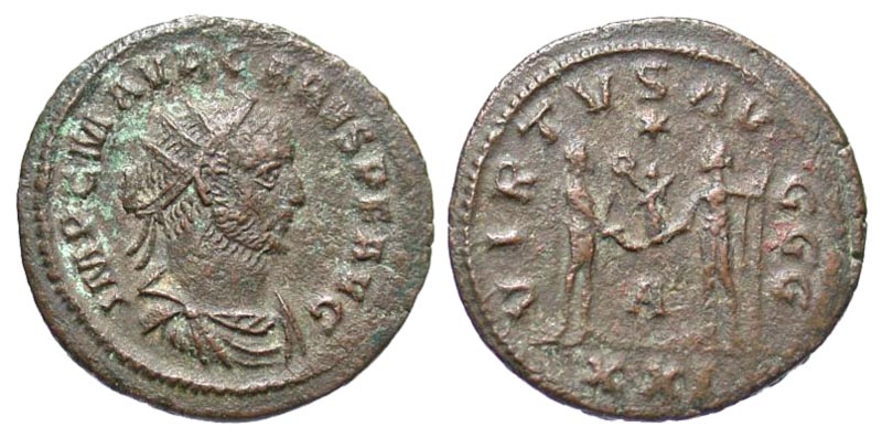 The reverse legend AVGGG was used only at the end of Carus' reign, after he had appointed his two sons, Numerian and Carinus, as Augusti.