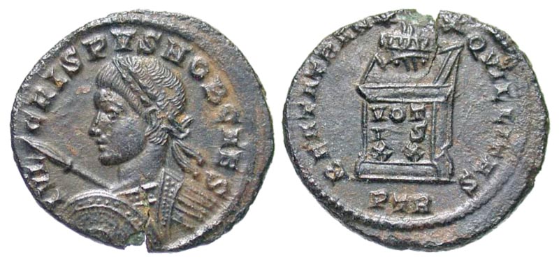 Lot 37-237. Crispus. Caesar, A.D. 317-326. Æ 3. Treveri mint, Struck A.D. 317-326. Ex Elwood Rafn collection.