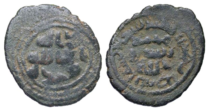 Lot 37-270. Umayyad Caliphate, Post-Reform. temp. al-Walid I. 86-96/705-715. AE fals. Akka mint, ND (80s AH). From the Kenneth Miller Collection of Ake-Ptolemaïs and Related Biblical Coins.