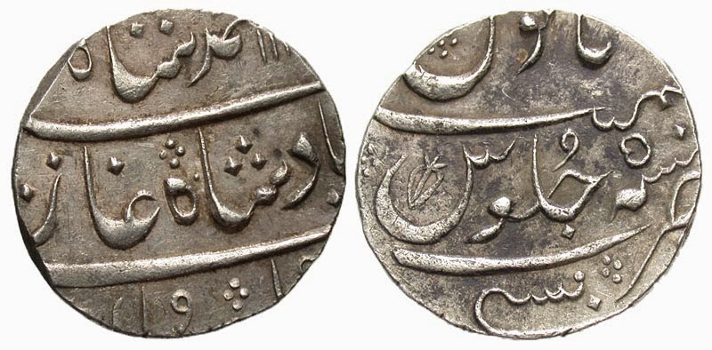 Lot 37-305. India, British India. Muhammad Shah. 1719-1748. AR rupee. Mumbai mint, RY 5.