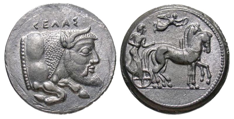 Sicily, Gela. 480-470 B.C. PB tetradrachm (26.4 mm, 16.86 g, 6 h). BIFACE LEAD / ROSA OFF-METAL TRIAL STRIKE. ΓEΛAΣ, forpart of man-headed bull right / Charioteer driving biga right, Nike flying right above; BECKER BMC 6 on edge. cf. BMC 6; CD-70. EF.