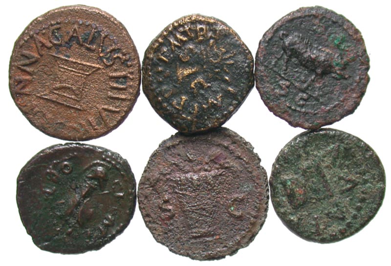 [Roman Imperial]. Lot of Six Quadrans. Augustus, Claudius, Nero, and Trajan. Average grade Fine.