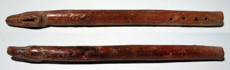 Colima Flute from West Mexico, ca. 300 BC - 300 AD. A fine Colima flute from West Mexico, c. 300 BC - 300 AD. This slender instrument is 11-1/2" long and has great tone. Intact, with good mineral deposits and highly burnished slip. Ex Arnold collection. Value range: $350 - $500.