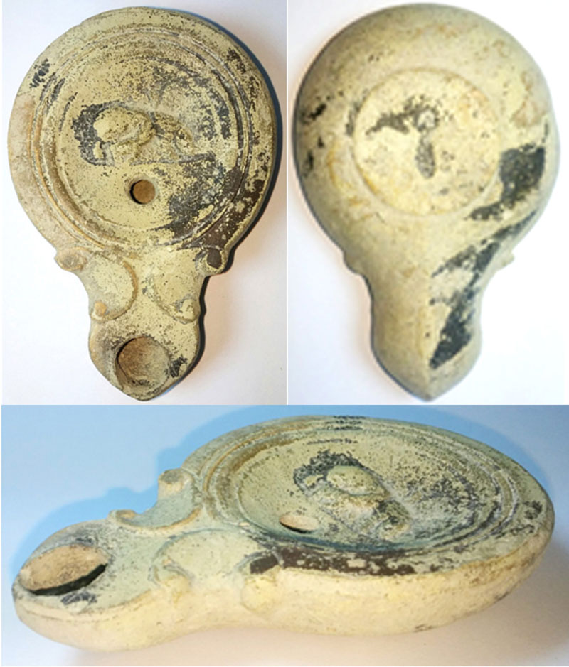 Roman Terracotta Oil Lamp with a Panther, circa 1st Century AD. A very attractive lamp that was used in antiquity. The lamp is intact, measures 65 x 95 mm. This piece is part of the estate of David Liebert of The Time Machine Company, a knowledgeable and respected member of the Antiquities Dealer community. He was also the author of many articles on artifacts including the many articles in The Celator magazine. His collection is extensive and we will be providing coins and artifacts for you in the future. Don't miss this opportunity to add some of his fine artifacts to your collection at fantastic prices.