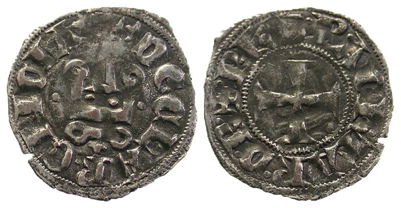 Lot 5-238. Crusader States, Frankish Greece. Principality of Achaea. Philip of Taranto. 1306-1313. BI denier. Corinth.
